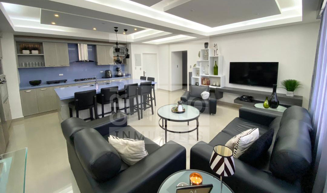 Se vende Apartamento, consta de 2 habitaciones, 2 baños, hermosa cocina moderna, vista a la Av. principal, sala - comedor amoblado, condominio con piscina y área social, Libre de hipoteca, vigilancia 24/7.