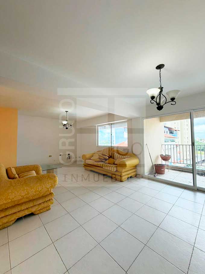 Se vende apartamento de 155 mts2, 3 Habitaciones con closets, 3 baños, cocina sencilla, amplia sala - comedor, balcón con vista a la piscina, área de lavandería, área de servicio con baño, estacionamiento techado 2 vehículos, buena ubicación dentro del condominio, vigilancia 24/7, ascensor, libre de hipoteca, piscina.