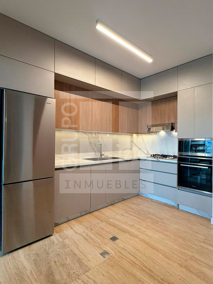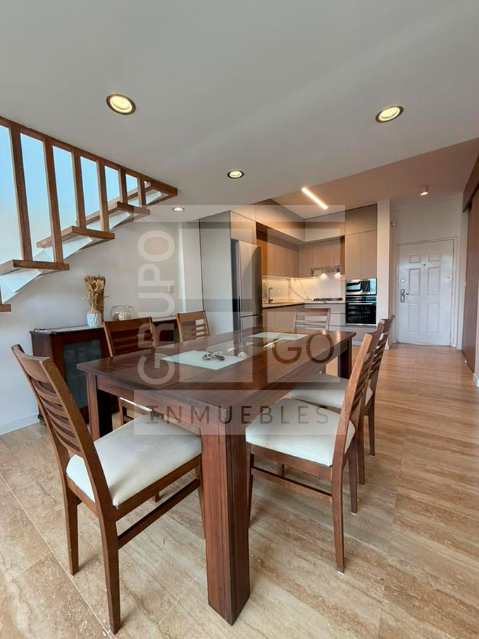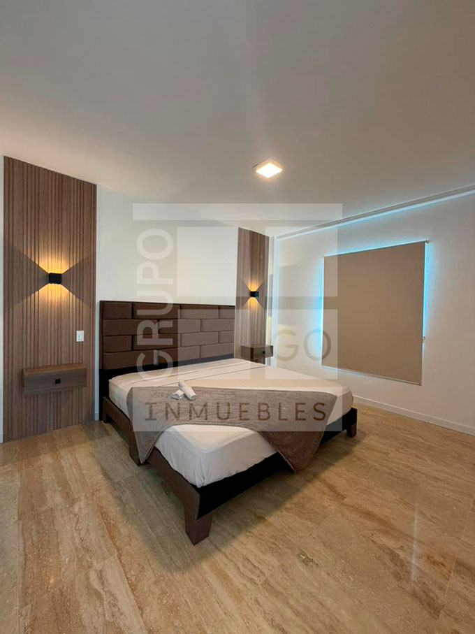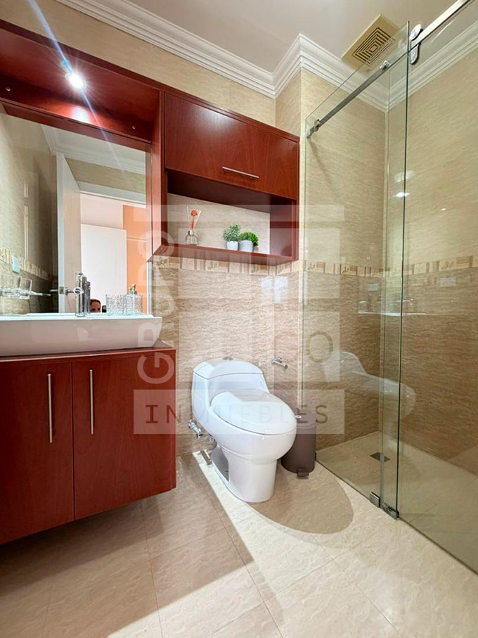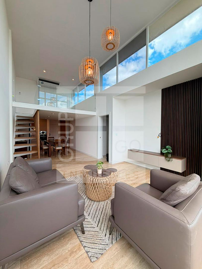 Se vende apartamento de doble altura, mezzanina, excelente entrada de luz natural, 2 habitaciones, 2 baños, piso de mármol, cocina empotrada moderna, área de lavandería, área social con piscina y parrillera, vigilancia 24/7